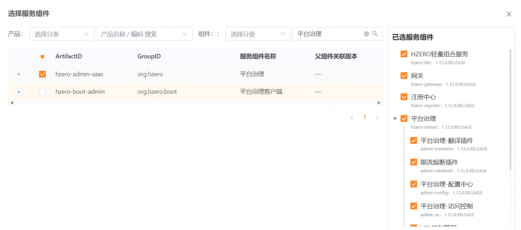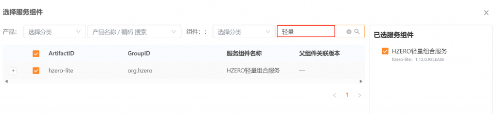 组件查询条件输入 “轻量”会出来HZERO轻量组合服务,选上: