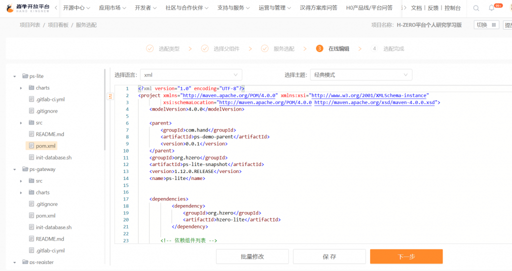 备注: 按照产品组建议,那个对lite 的依赖 在 hzero-lite、hzero-admin、hzero-register、hzero-gateway、hzero-license 这几个服务不需要加 ,除了这几个服务之外的服务才需要加,比如飞搭低代码的服务就需要加;
