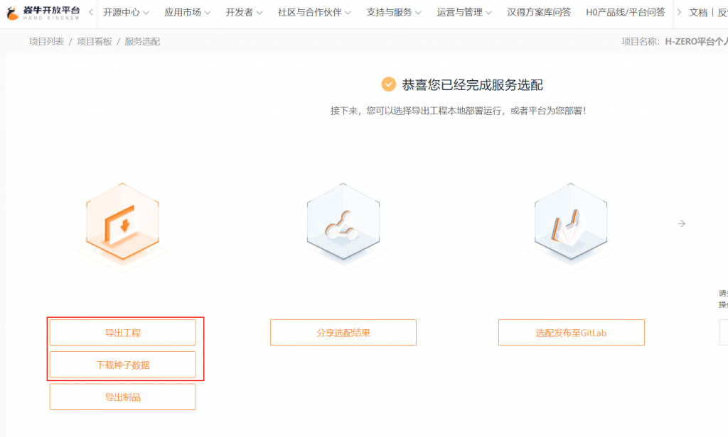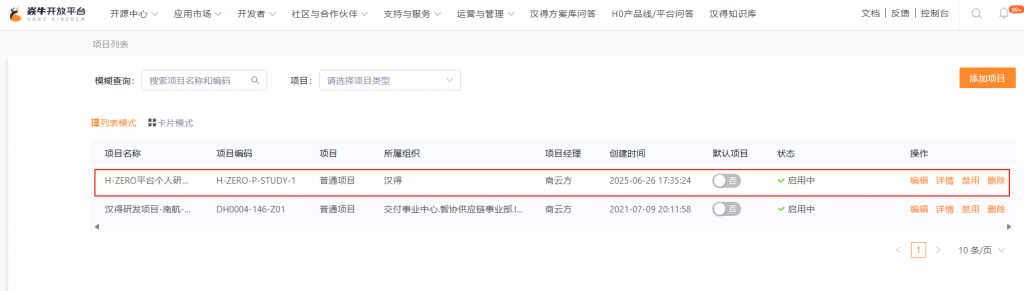 服务端选配:现在项目中心,新建一个项目,我这里新建了一个H-ZERO平台个人研究学习版的项目;