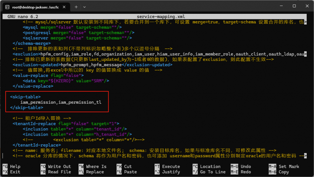 由于单体服务在进行微服务部署的时候,需要从数据库加载权限信息,而该权限信息在服务合并之后有所变化,所以这里不需要初始化权限信息,而是由服务启动后自动刷入。所以我们需要跳过权限表的初始化数据。