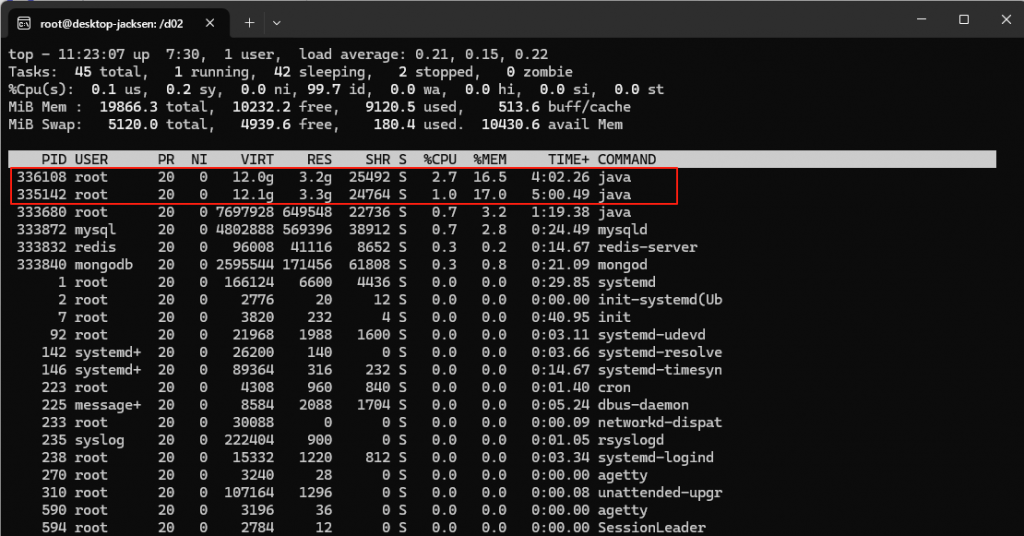 - 表示该进程(或容器内所有进程总和)尝试使用的虚拟内存达到了约 9.2GB