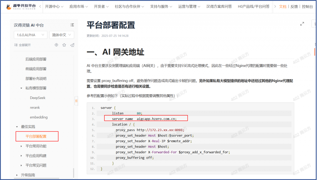 跟何博沟通了下,何博说那是平台用的WS地址,并非AI 用的WS地址,所以不影响,怀疑是Nginx反向代理设置的地方往请求头里面少加了内容,看了下nginx的反向代理配置: