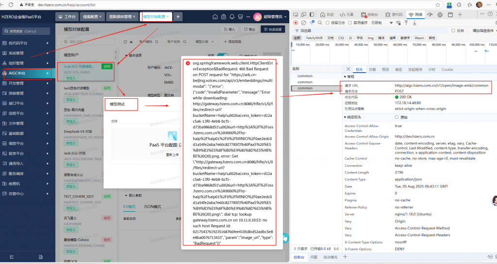 5、个应用导航的编排,点测试运行就报错,后台日志报 “: 400 BAD_REQUEST ”