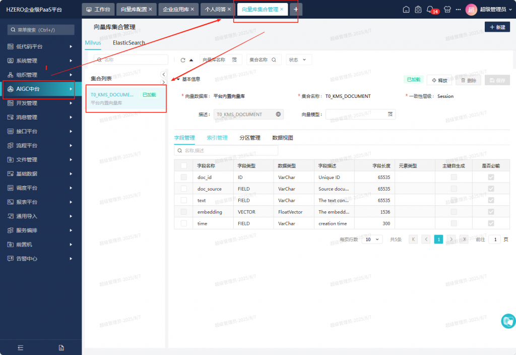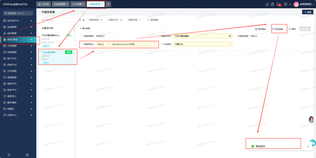 AI平台新增使用多个中间件,milvus(向量库)、neo4j(图数据库)、elasticsearch(全文检索)、hkms(指示检索和切片)、hpye(python沙箱)