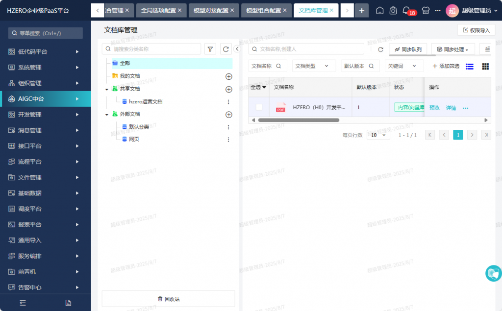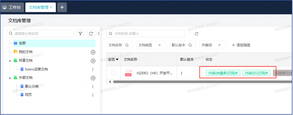 再次同步,没有报错,去文档管理看到已经同步成功了: