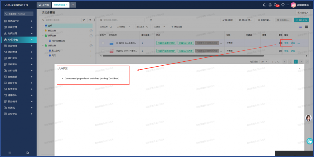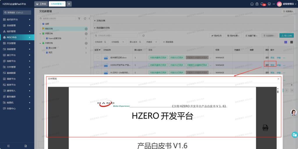 安装 kkfile view 或者only office服务,并配置文件服务,详情可参考开放平台/HZERO汉得企业级PaaS平台/服务列表/文件管理/组件列表/文件管理/开发者指南/文件预览配置