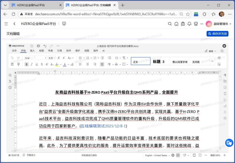- doc-server-url 设置成onlyoffice.hzero.com.cn(80端口默认可以省略掉)