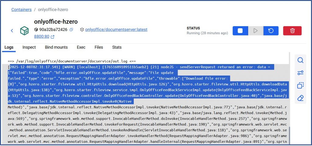 Hzero-file后台服务日志没有错误,onlyoffice 容器日志没有对应的错误