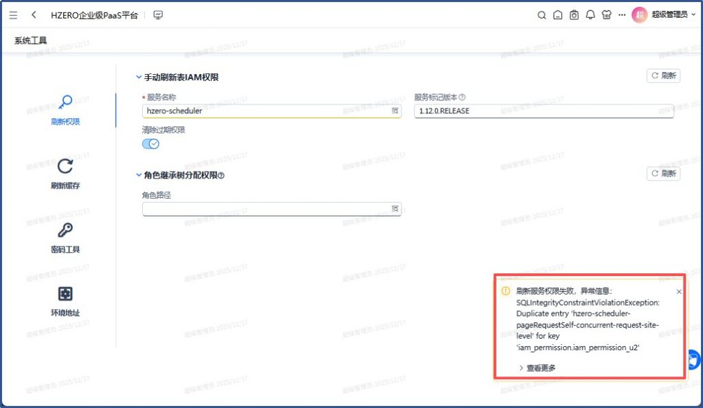 刷新后,再重启hzero-jar服务就正常了。
