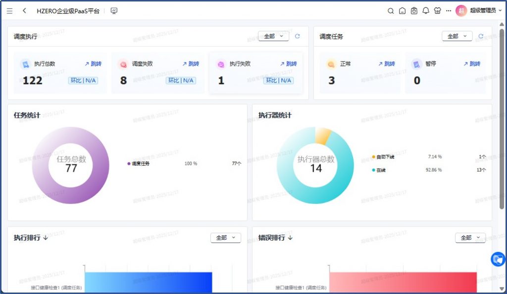 再测:平台/调度任务/任务调度中心,打开就正常没有错误了:
