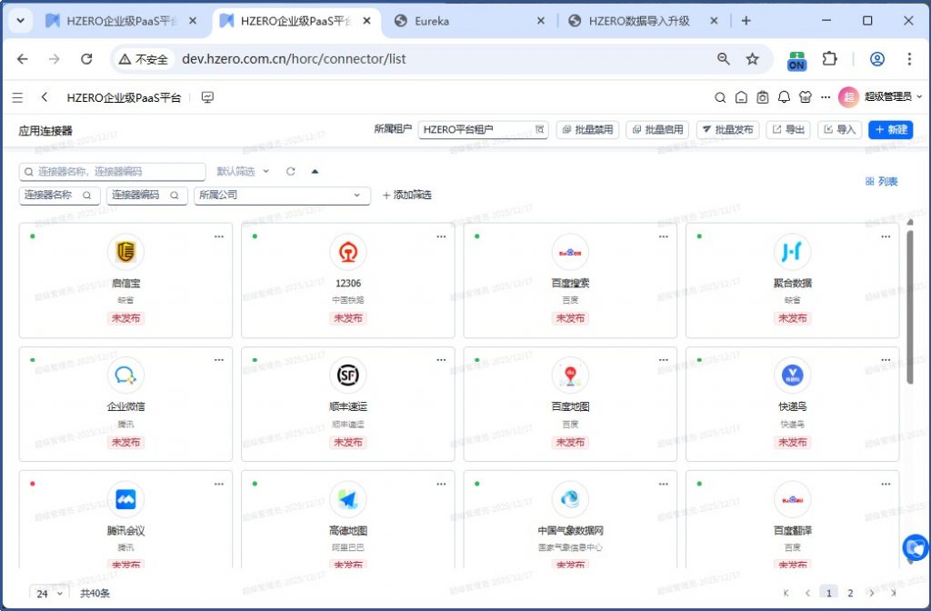 路径:平台菜单/服务编排/应用连接器/应用连接器