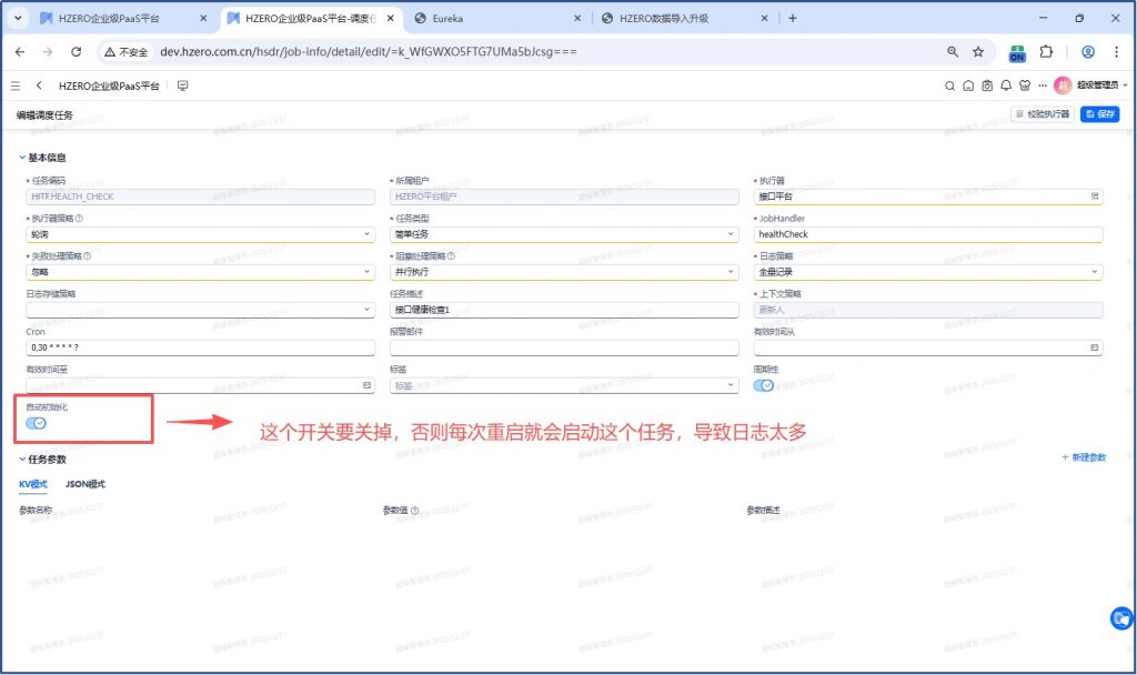 经过测试,只是停掉这个调度任务不够,把日志策略改成仅记录异常也不够,每次重启就会恢复到全量记录。所以需要把自动初始化这个开关关掉,保存,然后再停掉这个任务。