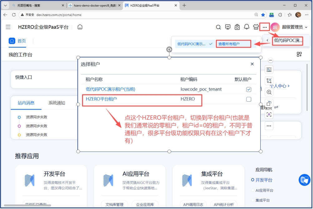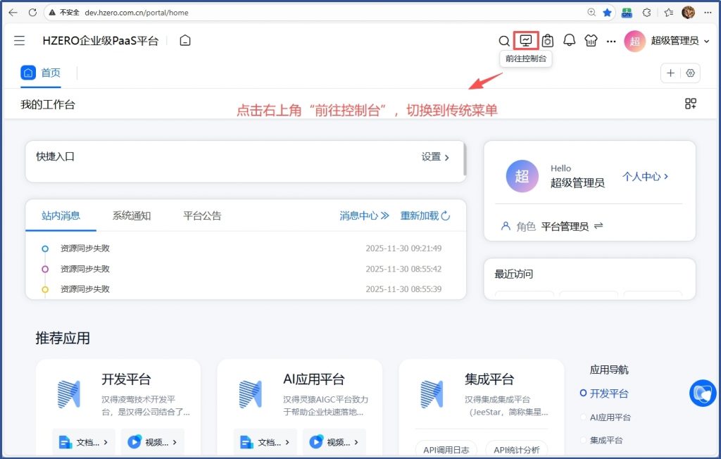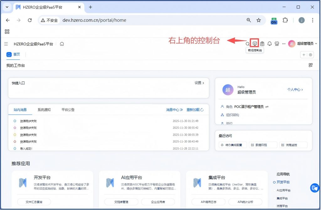 完成hosts设置户,访问http://dev.hzero.com.cn