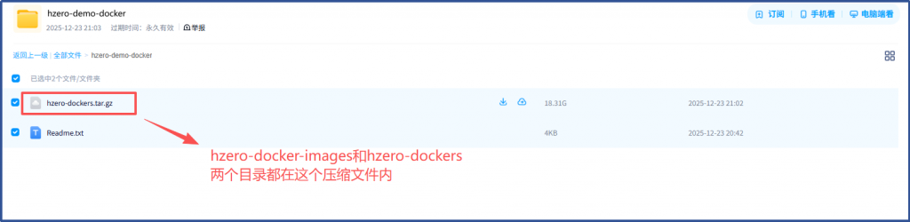 2. 持久化数据压缩包文件:hzero-dockers.tar.gz,包括数据库文件、配置文件、启停服务脚本。