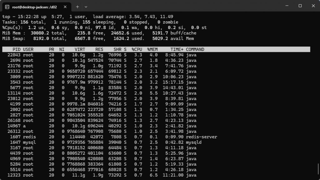 而如果使用Oracle的 JDK,但启动AI平台服务就消耗了29G内存,基本把我的WSL虚拟机分配的内存消耗完了,(备注:使用Oracle JDK的WSL虚拟机中所有服务的run_nobuild.sh中min内存也都是设置到128的)。