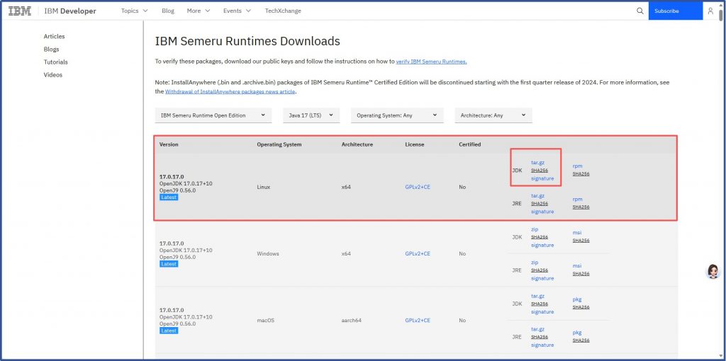 $ tar -zxvf ibm-semeru-open-jdk_x64_linux_17.0.17_10_openj9-0.56.0.tar.gz