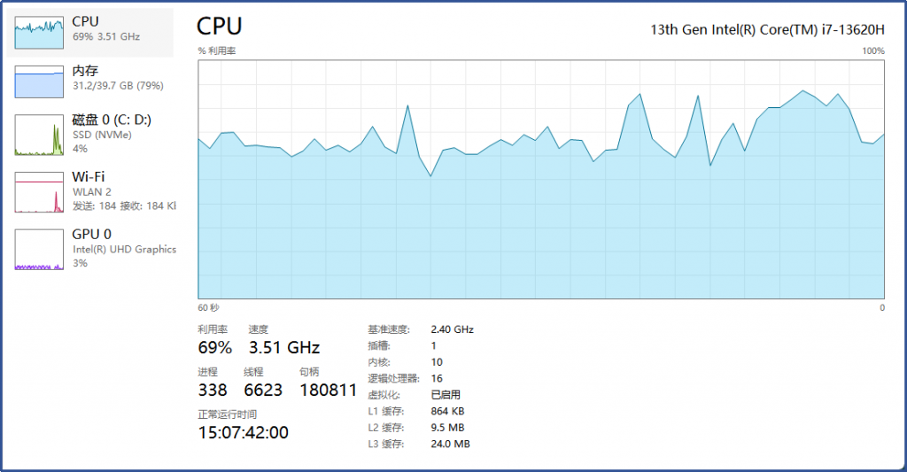 用一段时间后CPU消耗也未上升: